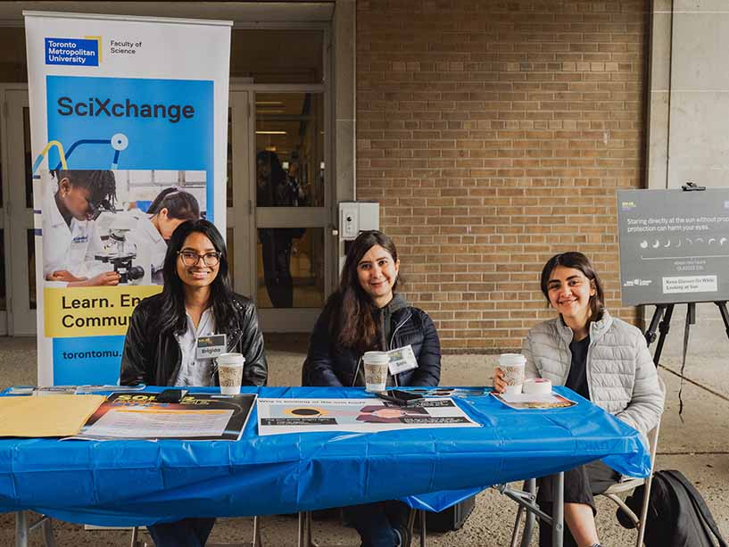Members of SciXchange, TMU’s outreach office for the Faculty of Science, were on hand to chat about all things eclipse. Attendees also had the chance to create pinhole viewers, watch a live stream from NASA and more. (Photo: Sarah McIntyre)