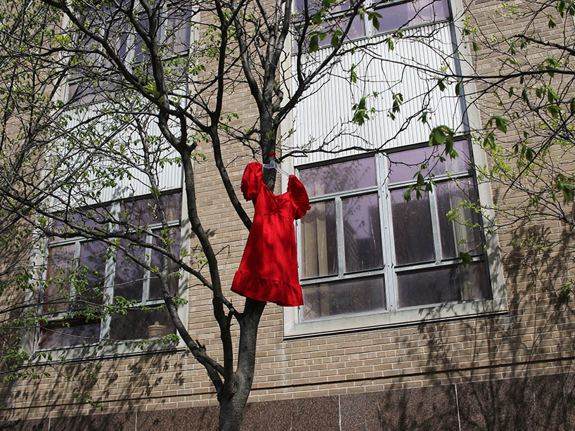 The word ‘redress’ means to remedy or set right. The display of red dresses in public spaces is meant not just as a memorial for MMIWG2S, but as a call to action (Native Women’s Association of Canada).