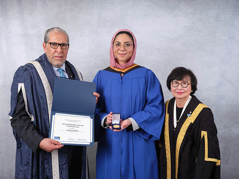 “Receiving the TMU Gold Medal is both an honour and a challenge. This award is a commitment to set a new benchmark for what I aim to achieve in the future, motivating me to continue on my path and strive for greatness,” said Adelzadeh.