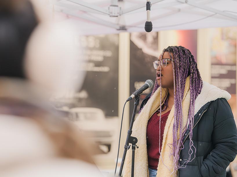 TMU student Rianna Jones sings at the 2023 TMU Frost event. (Photo: Alyssa Katherine Faoro)