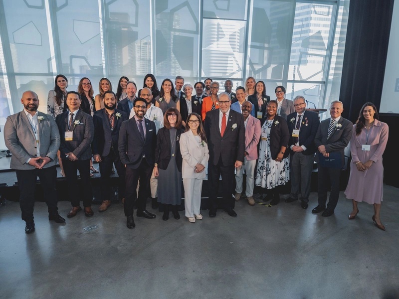 President Lachemi stands with TMU staff members during the Toronto Met Awards Gala, recognizing excellence, leadership, and service across the university.