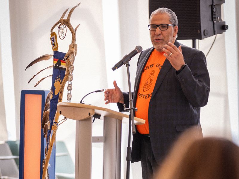 President Lachemi provides opening remarks on Orange Shirt Day at TMU.