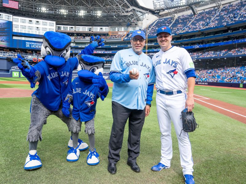 President Lachemi throws the ceremonial first pitch at the Toronto Blue Jays game.