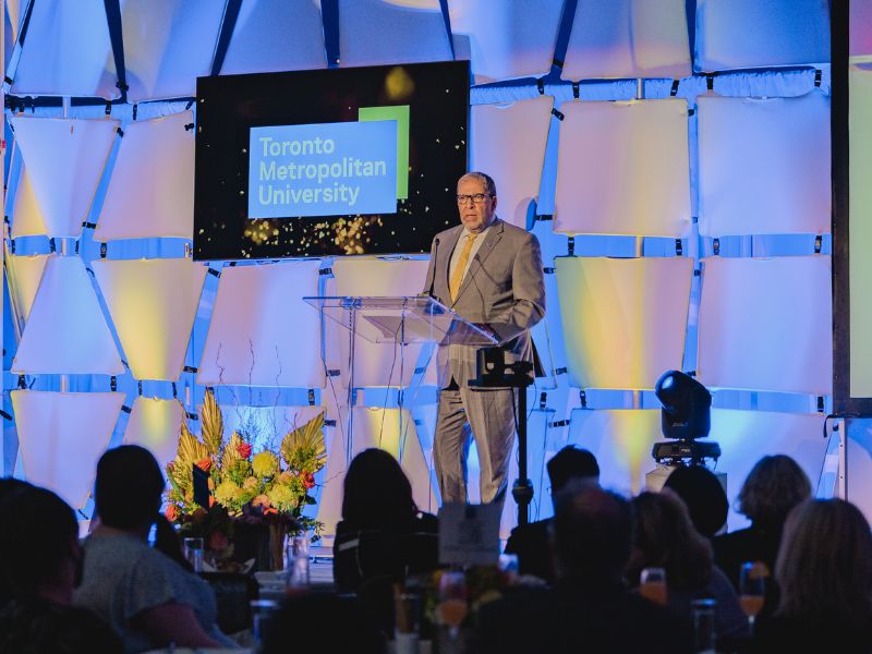 President Lachemi addresses faculty and staff award recipients at the Toronto Met Awards Gala, an opportunity to recognize excellence in teaching, research, administration, service and leadership. Photo: Alyssa K. Faoro
