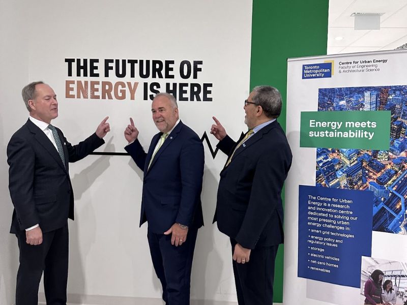 President Lachemi with Minister of Energy, Todd Smith and Minister of Finance, Peter Bethlenfalvy at the launch of the Clean Energy Credit (CEC) Registry at the Centre of Urban Energy (CUE).