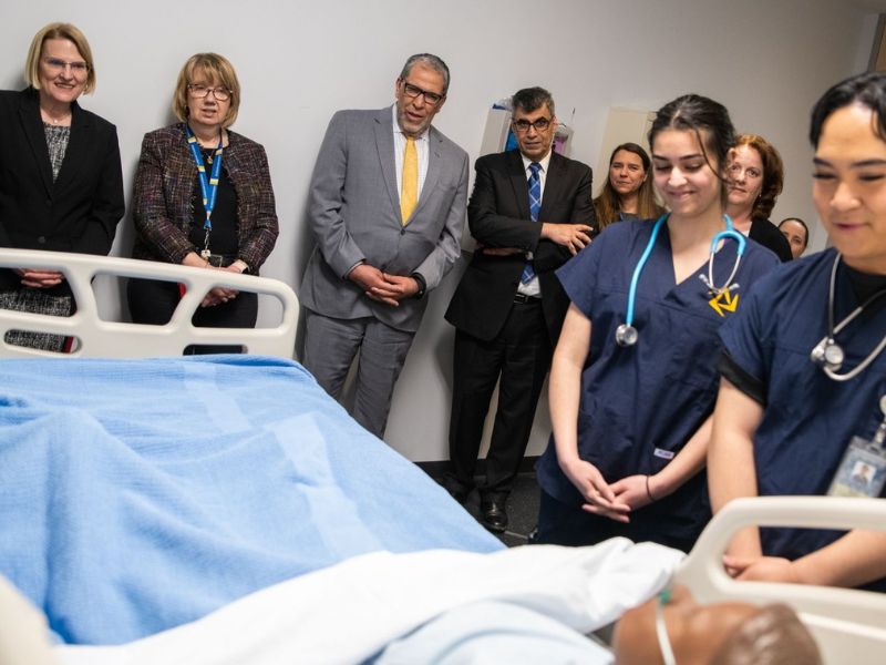 During National Nursing Week, President Lachemi welcomed the Hon. Sylvia Jones, Deputy Premier and Minister of Health for a tour of TMU's state-of-the-art facilities and cutting-edge training methods at the Daphne Cockwell School of Nursing.