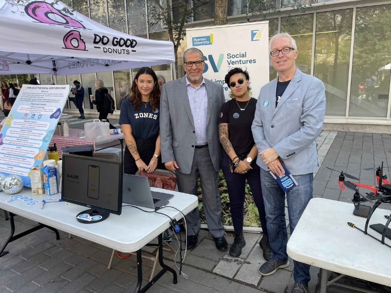 President Lachemi checks out the Zone Learning Street Fair where students could learn more about TMU's 10 Zones.