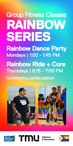 Group Fitness programming is available to the 2SLGBTQIA+ community and aims to be as inclusive and welcoming as possible; however, to take more intentional steps to invite this community into our programming we have two classes being offered and identified as RAINBOW DANCE PARTY & RAINBOW RIDE + CORE to help those in the community better identify these opportunities. To help ensure maximum comfort, these classes are being taught by two very proud members of the 2SLBTQIA+ community and two excellent instructors. These classes are also for ALLIES, that is, anyone who is committed to creating a positive, inclusive space.
