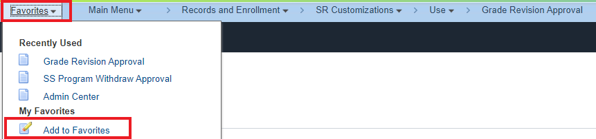 - Main Menu > Records and Enrolment > SR Customizations > Use > Grade Revision Approval