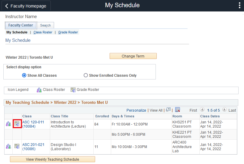Once the appropriate term has been selected, click the grade roster icon