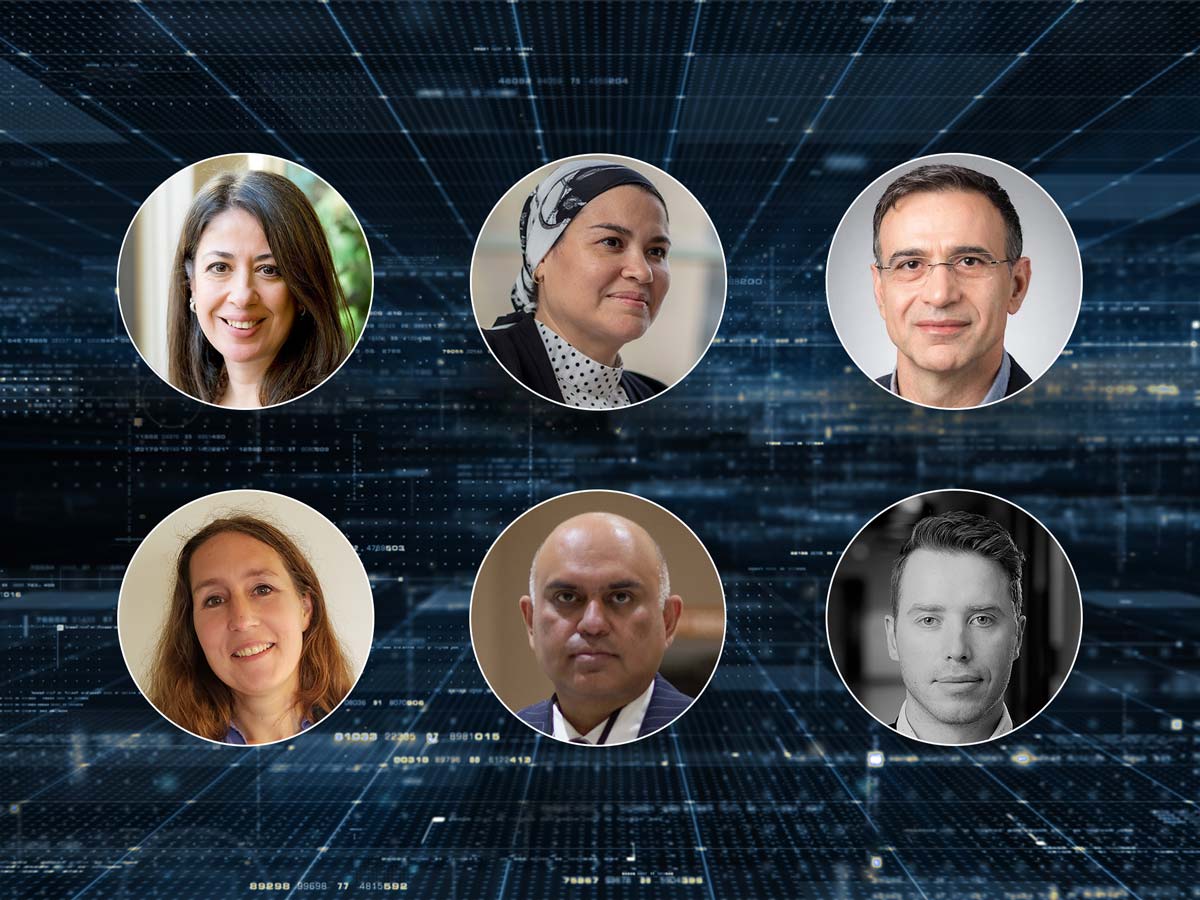 Rogers Cybersecure Catalyst Fellowship members Burcu Bulgurcu, Rasha Kashef and Reza Samavi (top row) and Monika Freunek, A.J. Khan and Jeff Schwartzentruber (bottom row).