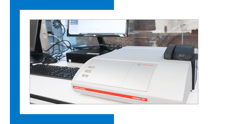 By using light scattering techniques, we can determine droplet size in emulsions, particle size in suspensions, as well as their charge.