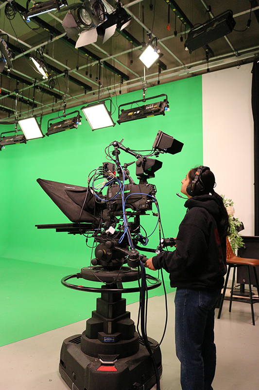 Sports Media student Anjali Singh operating a camera during PBS Giving Tuesday.