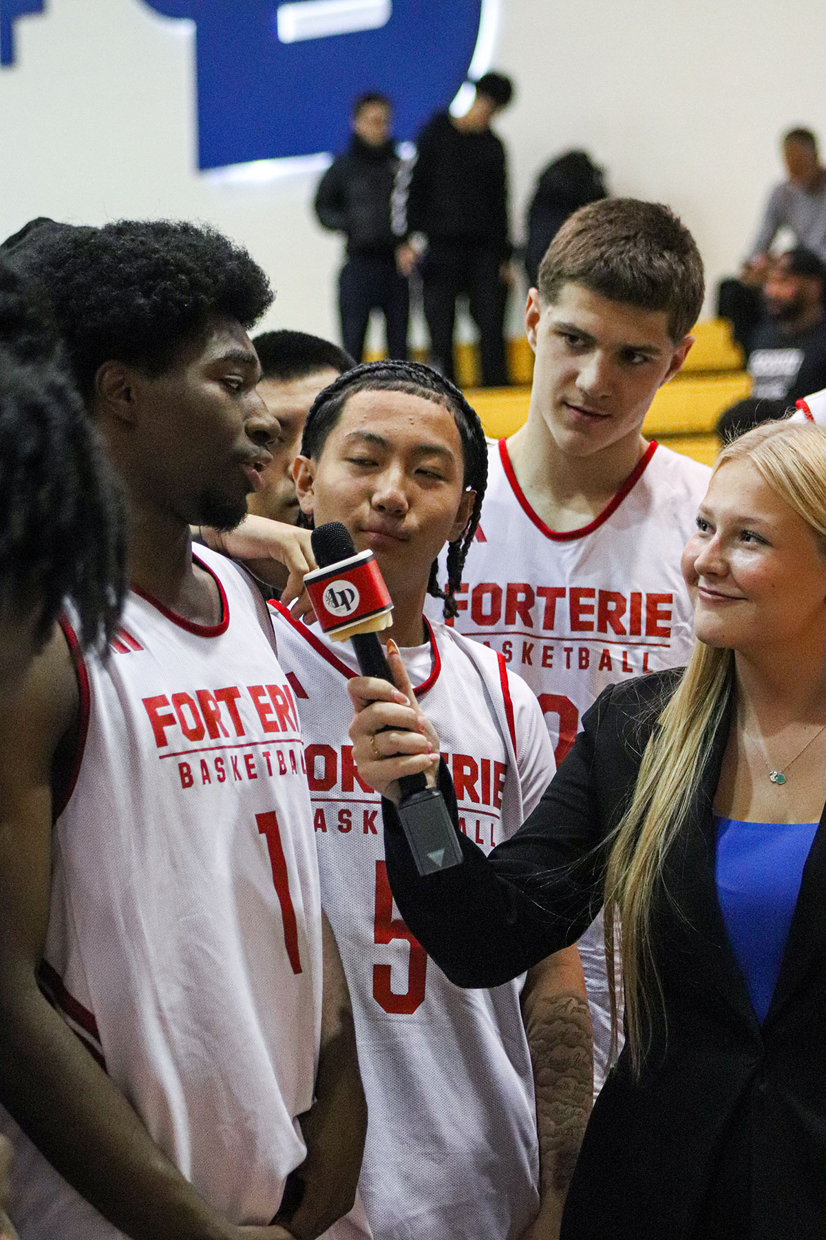 Bancroft and Thandi said the “email chains were certainly daunting,” as they coordinated between multiple parties to pull off the live broadcast. Some of the things they had to consider as a group were budgeting, finding a date and time for the match, ensuring the teams didn’t show up in the same colour jerseys, coordinating with facilities staff at the MAC, operating the shot clock during the game and more.