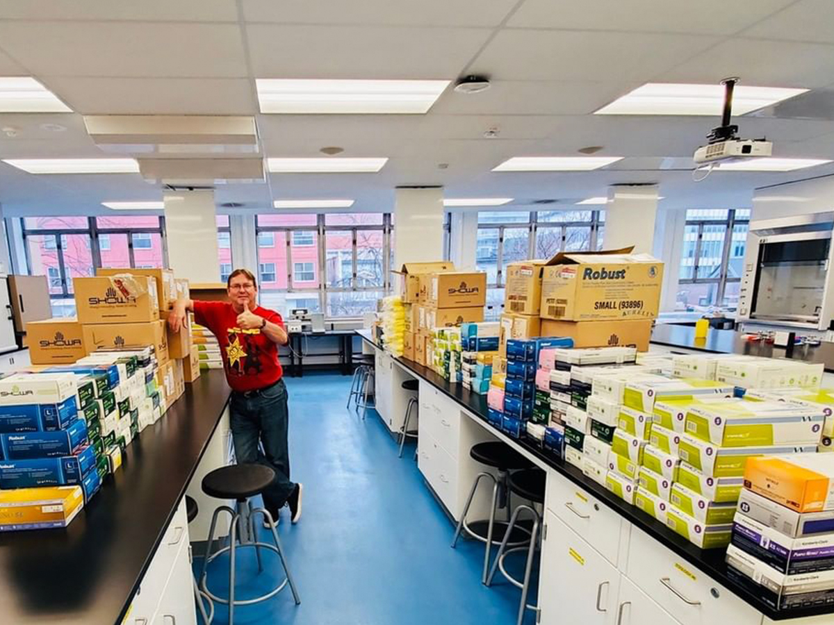 By the weekend, emails were circulating back and forth. One professor after another began contributing. “There wasn’t a moment’s hesitation. Everyone just jumped into action, saying ‘Here are my gloves, take them all’,” says McWilliams. “I’m very proud to work with such a great crew.”