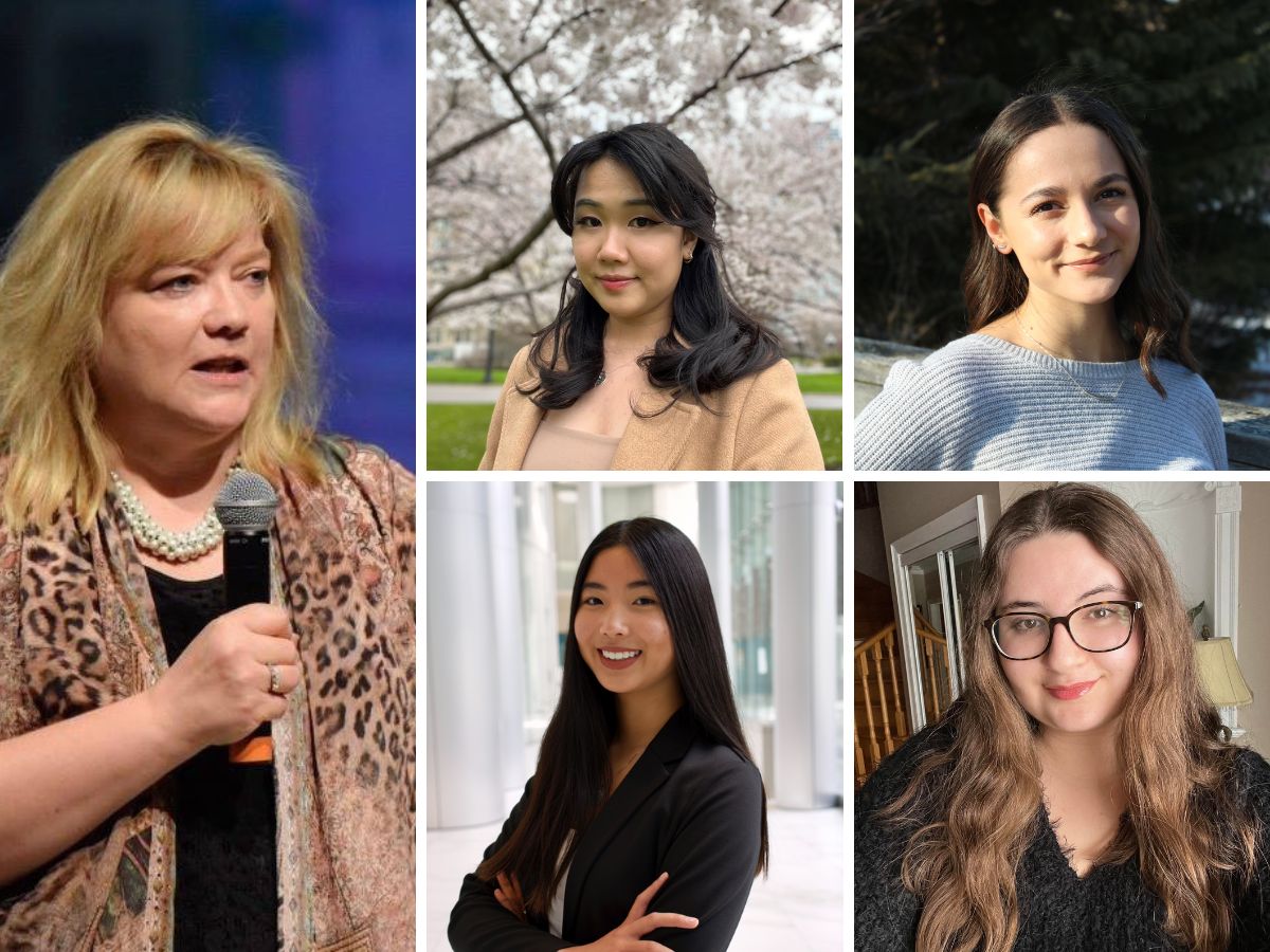 From top left to bottom right: Dr. Imogen Coe (Professor, Dept of Chemistry & Biology), Jenny Long (Computer Science, TMU Women in Computer Science), Helen Melino (Medical Physics, TMU Women in Physics), Winnee Zhan (Financial Mathematics, TMU Women in Mathematics), Josephine Lionti (Biomedical Sciences, TMU Association of Undergraduate Women in Science)