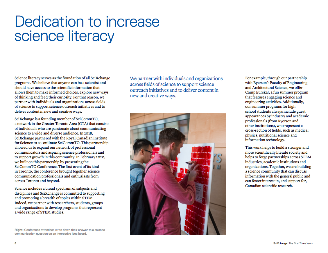 In 2020, we reflected on our experiences and accomplishments, and developed our review in order to share them with the public. We invite you to share this celebration with us, and learn about our passion for science communication in our review, SciXchange: The First Three Years.