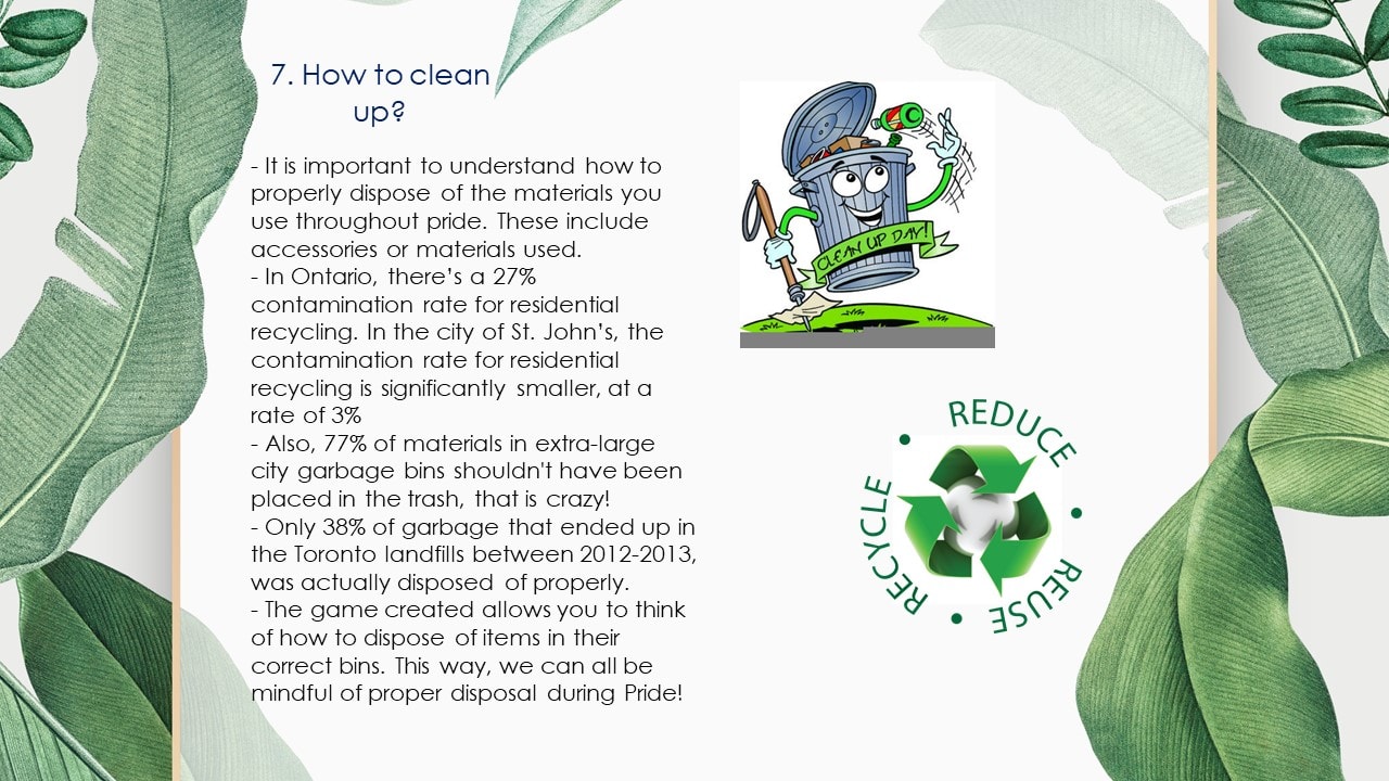 Along with this, we prepared a Guide to Greening Your Pride that provides readers the details about our display, and how to make their own Pride environmentally friendly. We opted for only a digital copy online to avoid using paper.
