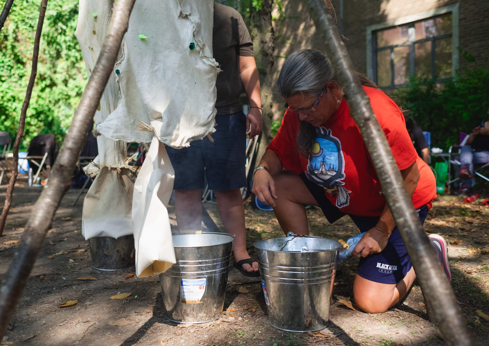 During the hide tanning event, Ryerson University hosted the Ryerson Pow Wow (opens in new window) , and SciXchange was invited to showcase the tanning process for guests. The pow wow included several traditional ceremonies and performances, such as the sunrise ceremony, as well as a vendor market to promote local Indigenous artists and business owners, where guests could purchase and learn more about their products.