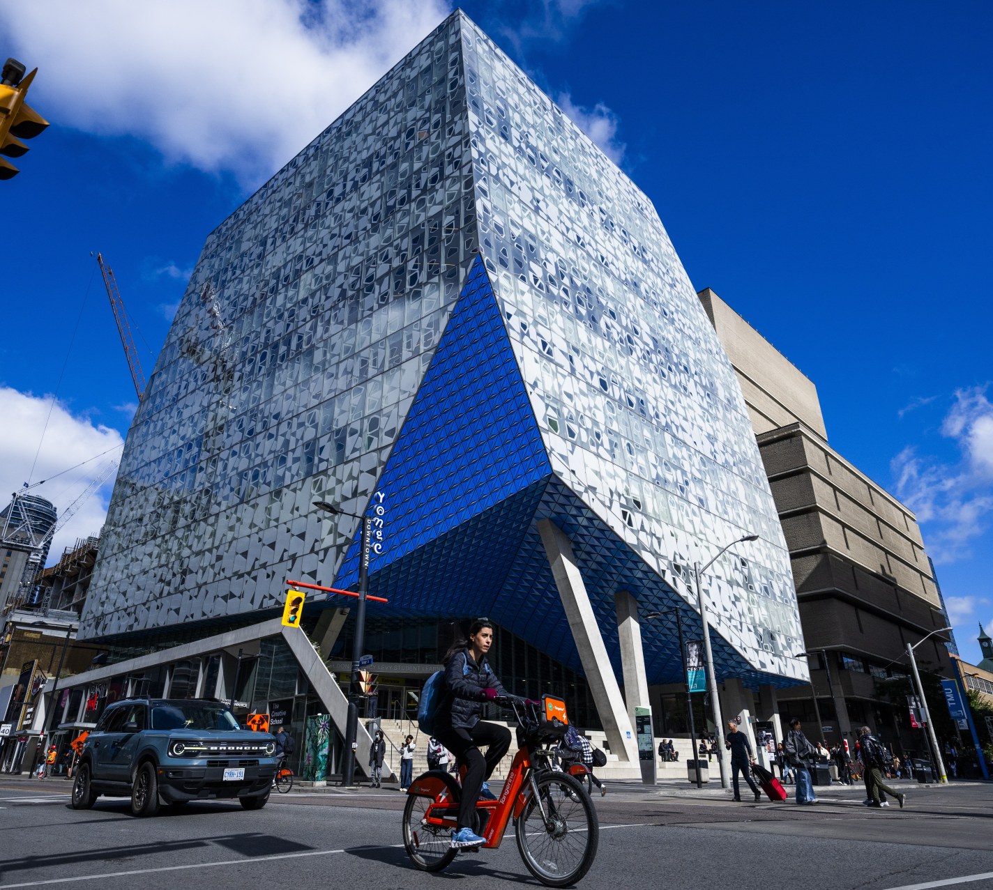 At TMU, we prioritize the creation of a green, pedestrian-oriented campus that also promotes sustainable commuting. Our commitment extends beyond the campus through our academic programs and research contributions in city building. Through initiatives in urban planning, civil engineering, and heritage preservation, TMU is actively shaping the future of sustainable cities and communities. We strive to promote inclusive, sustainable urban environments while supporting cultural and artistic expression through spaces like The Image Centre and various performance and community programs.
