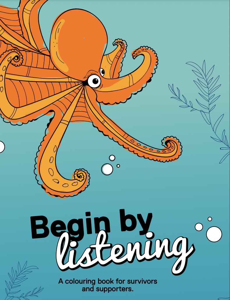 Begin by listening - a Colouring Book for People Affected by Sexual Violence is an initiative of Consent Comes First. It was written by Farrah Khan and designed & illustrated by Carita Marsili. Feel free to print and share the colouring book for personal use. Post your coloured images on social media with the hashtag #ConsentComesFirst. This is a choose-your-own-adventure book. Fill the pages with colour, journal when it feels right and skip pages that are too much. You are writing a new story.