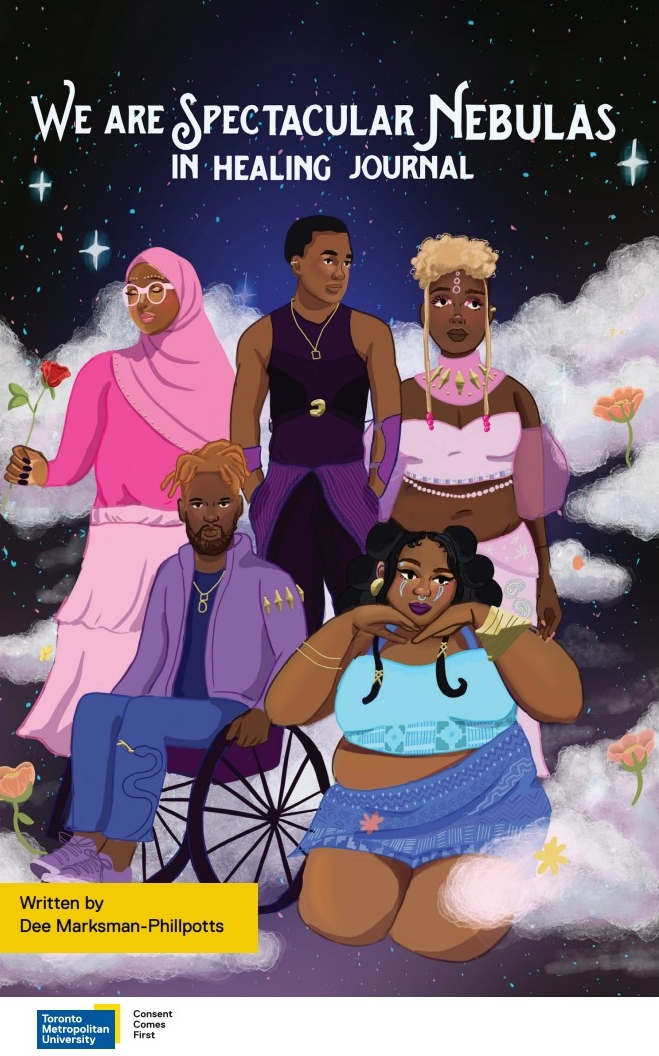 This colouring book was inspired by the We Heal Together support group founded by TMU student Casandra Fullwood. Thank you for all the work you have done to create safer spaces for Black survivors.