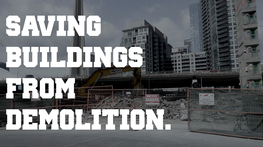 This research explores the escalating problem of mass demolitions in Toronto, where structurally sound 50-70-year-old buildings are being replaced by new high-rise developments. Through research, case studies, expert interviews and narrative filmmaking, the study examines cultural, social, and environmental implications of demolitions. The findings demonstrate that building reuse offers a feasible and more socially and environmentally just alternative to new constructions and allows for the conservation of embodied carbon and resources, reduction of landfill waste, and preservation of collective memories and cultural identity. Extending the research into the medium of documentary film, Saving Buildings from Demolition, seeks to raise awareness of the problem. By employing the melodramatic framing, the documentary aims to engage audiences emotionally and stress the importance of reimagining how we develop the growing city of Toronto.
