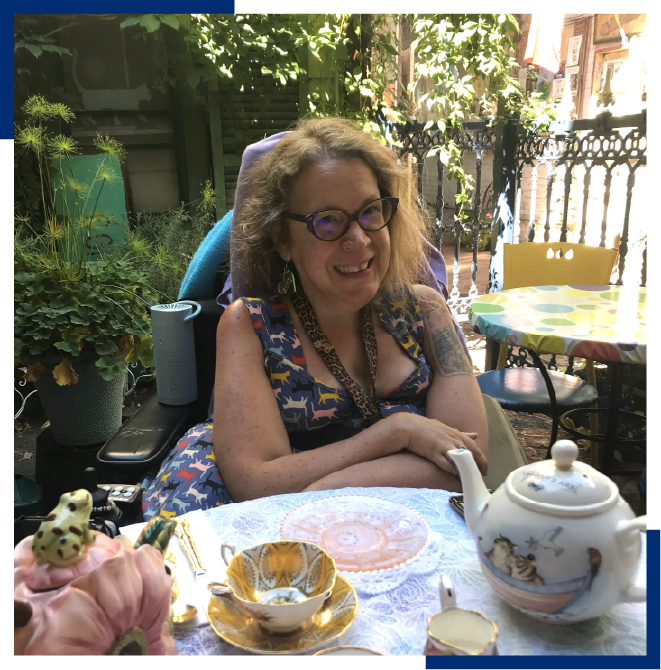 Dr. Loree Erickson’s (she/her) activist, research, and teaching interests include disability justice, abolition, porn studies, cultures of un/desirability, queercrip porn, and media. She currently teaches at U of T and OCAD. She’s an award-winning porn performer/maker. Along with other community organizing, she is a forerunner in theorizing and thriving through care collectives. She’s a white settler queer femmegimp, cat lady, lover of sun, social justice and sparkly things.