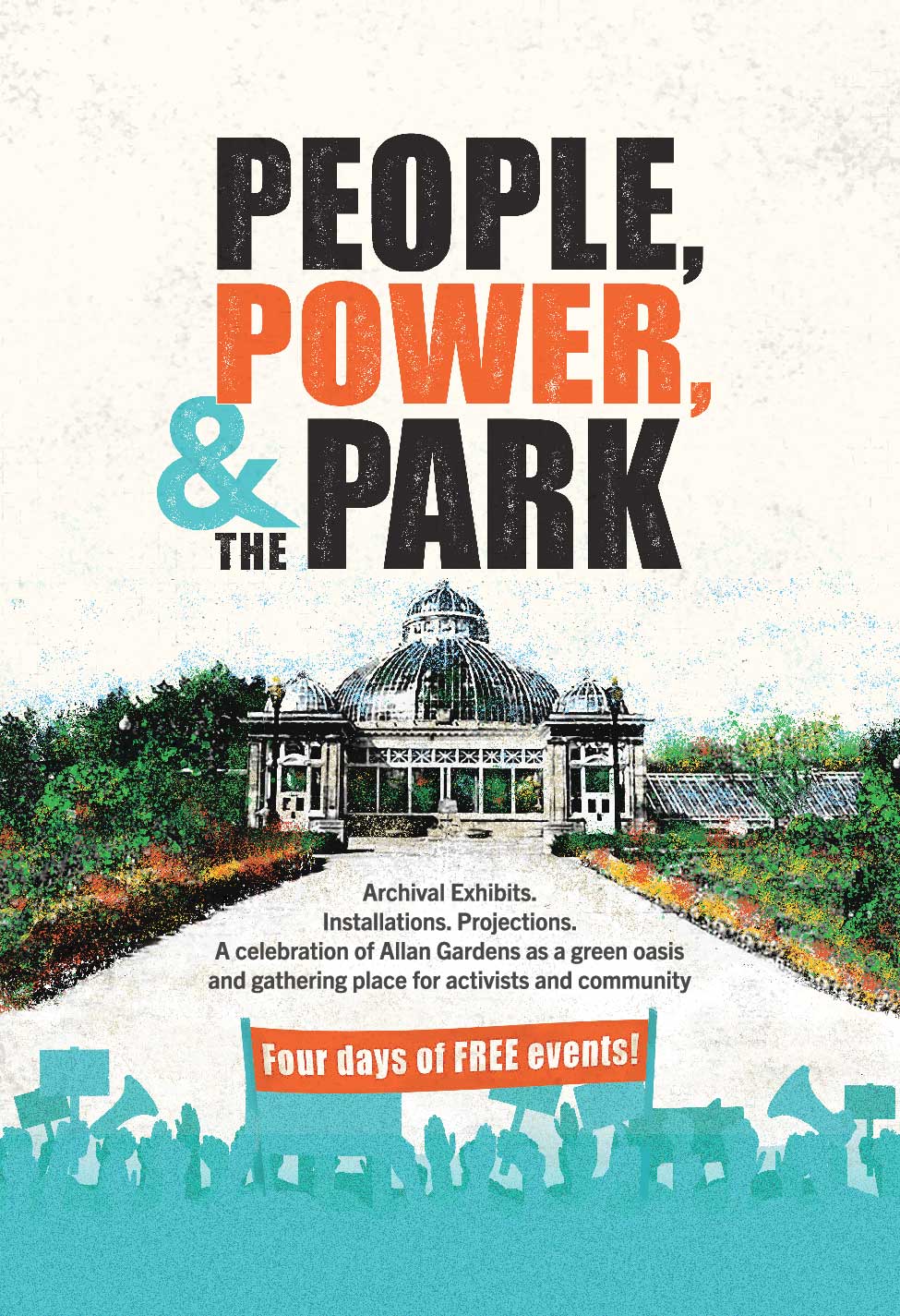 This exhibition reflects the many roles Allan Gardens has played over the past 125 years. It has been a village commons, a city park, a speaker’s corner, a community centre without walls. It has offered cooling shade in the summer, a storied greenhouse in the winter, a place to gather with others, or enjoy solace and solitude. Long before it was designated as private property, and then a city park, this was a place of great significance to Indigenous communities who have lived, gathered and held ceremonies here for millennia and continue to do so. The exhibition features installations from the four-day festival that took place in Allan Gardens from Sept 22 to 25, as well as original work from Indigenous Artist in Residence Michel Dumont.