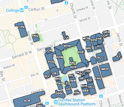 By Transit: The nearest subway stations to campus are Dundas Station or College Station.