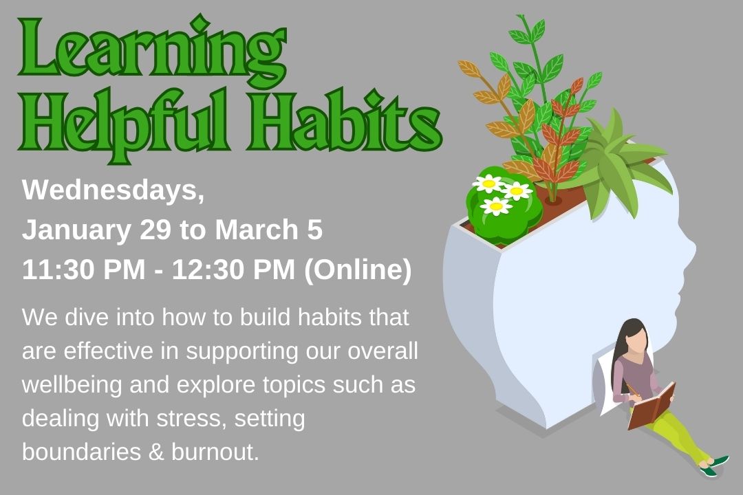 Whether you’re aiming to set new routines, shake off old habits, or just want to hang out with supportive folks with their own lived experiences, Building Helpful Habits is here for you. Dive into honest talks about goal setting, share your wins, get advice, and celebrate your journey with like-minded folks. This peer support group has been designed based on feedback from your peers as to what is relevant to the current student experience. We welcome those who have taken this course before and newcomers alike!