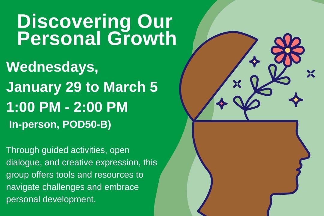 Discovering Our Personal Growth is a supportive space designed to help students explore, reflect, and grow both personally and academically. Each session focuses on practical strategies and meaningful discussions to empower participants in managing stress, building resilience, recognizing burnout, and fostering self-confidence. Through guided activities, open dialogue, and creative expression, this group provides tools and resources to navigate challenges and embrace personal development.
