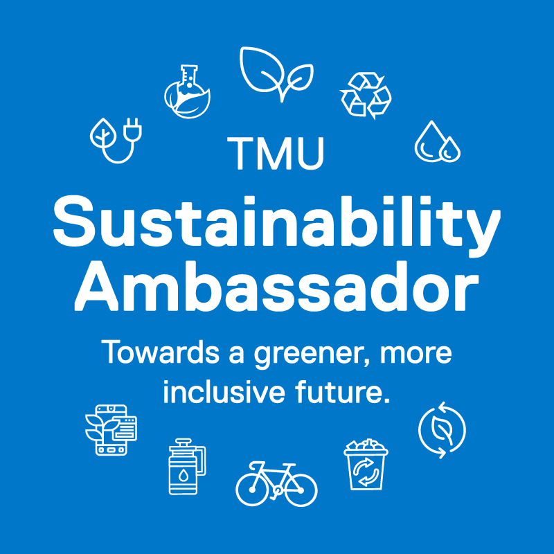 Are you passionate about sustainability and contributing to a sustainable campus? We encourage you to get involved with TMU’s Sustainability Office through the Sustainability Ambassador Program for students, faculty and staff who are interested in promoting a culture of sustainability through peer-to-peer education, engagement, research and action.
