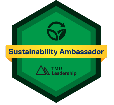 The student Sustainability Ambassador program is part of TMU’s official co-curricular program, Level-Up. It provides recognition to students for their involvement outside of the classroom and presents an official record to prospective employers and graduate schools to complement their academic transcript.