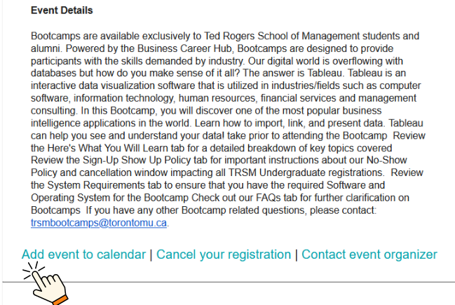 With over 12,000+ Ted Rogers School students providing an enhanced student experience also means prioritizing event accessibility. To uphold accountability, when you sign up for an event ensure that you are 100% committed to attending. Otherwise, you are taking away a spot from another student. By cancelling at least 24 hours in advance, you are helping free up a spot for another student to participate.