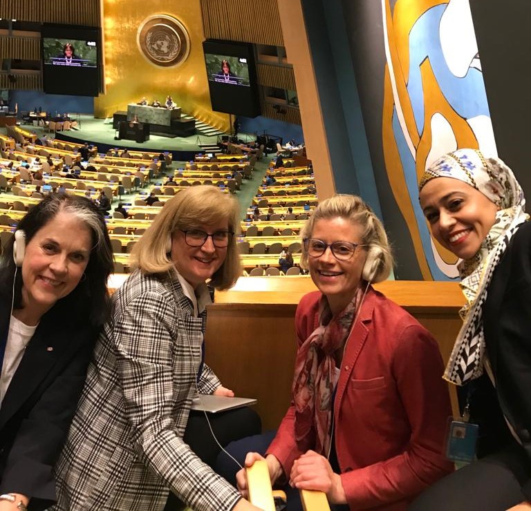 On March 24, 2023, at the UN’s 2023 Water Conference, Dr Patricia Hania' collaborative research (with Dr. Sari Graben) on Indigenous women and water governance was presented. Pictured are Dr Hania (left) and colleagues in the gallery of the UN's General Assembly.