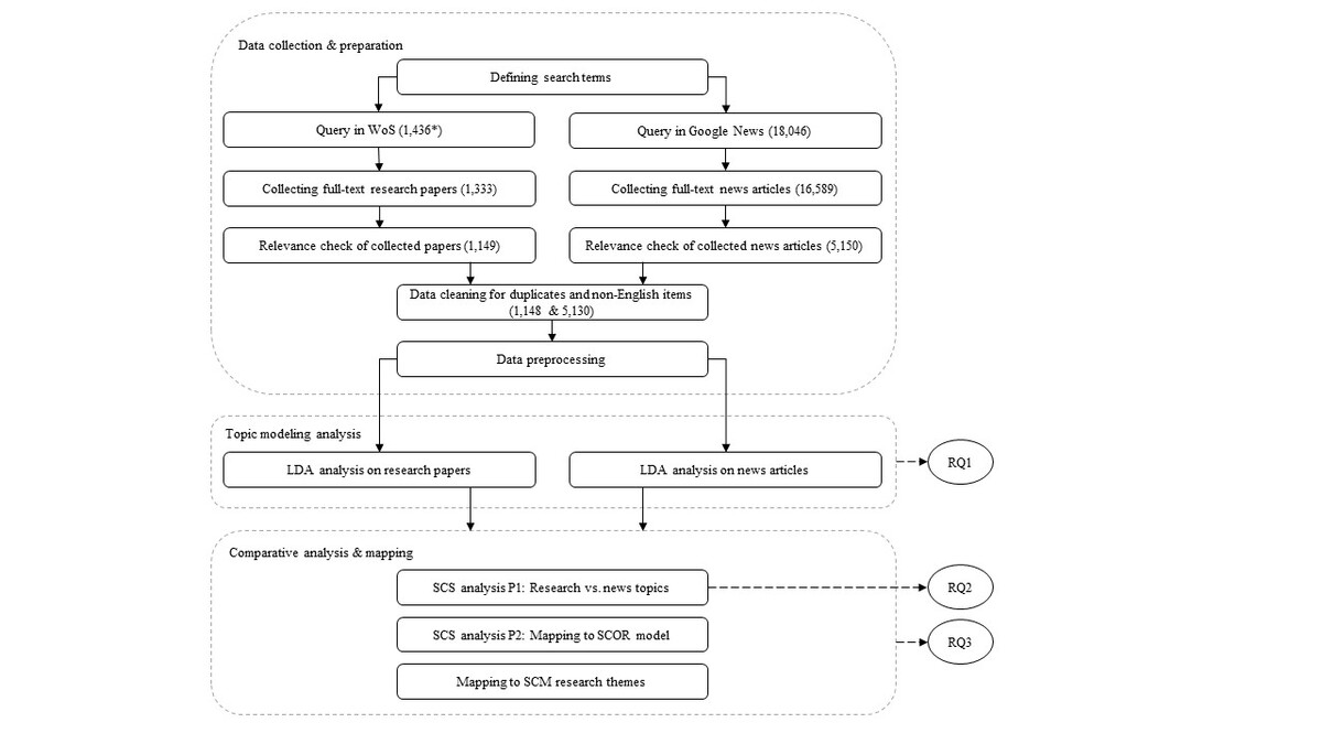 Blockchain technology (BT), BT-enabled supply chain management (BT-SCM), Data-driven modeling. Latent Dirichlet allocation (LDA). Literature review. News media