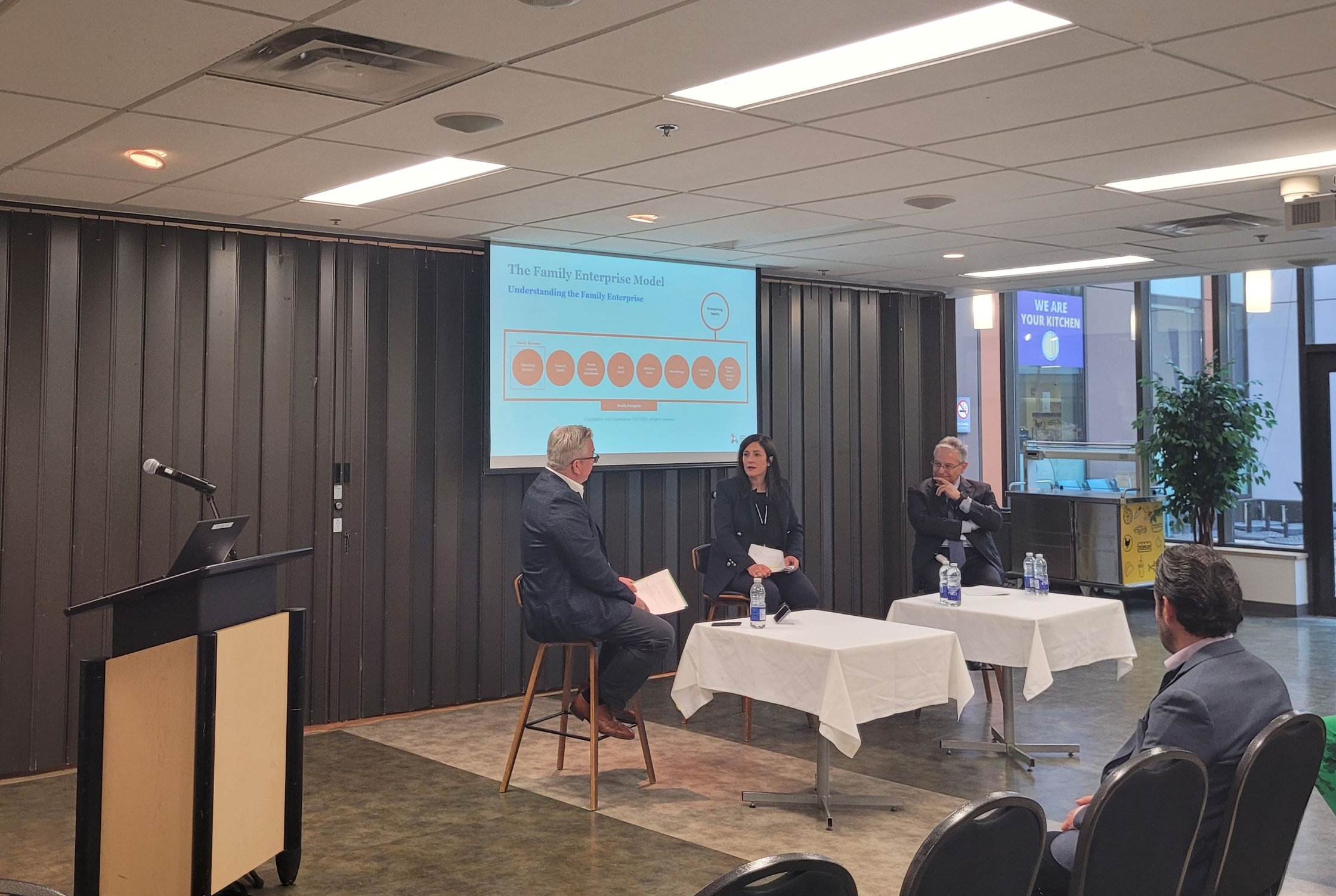 Kieran Young, of Hazelview Investments, led a panel discussion with Christina Sorbara, VP at Sorbara Group / recipient of a 2024 Transformational Woman in Family Business Award, and Dr. Salvatore Tomaselli a family business expert visiting from Sicily’s University of Palermo.