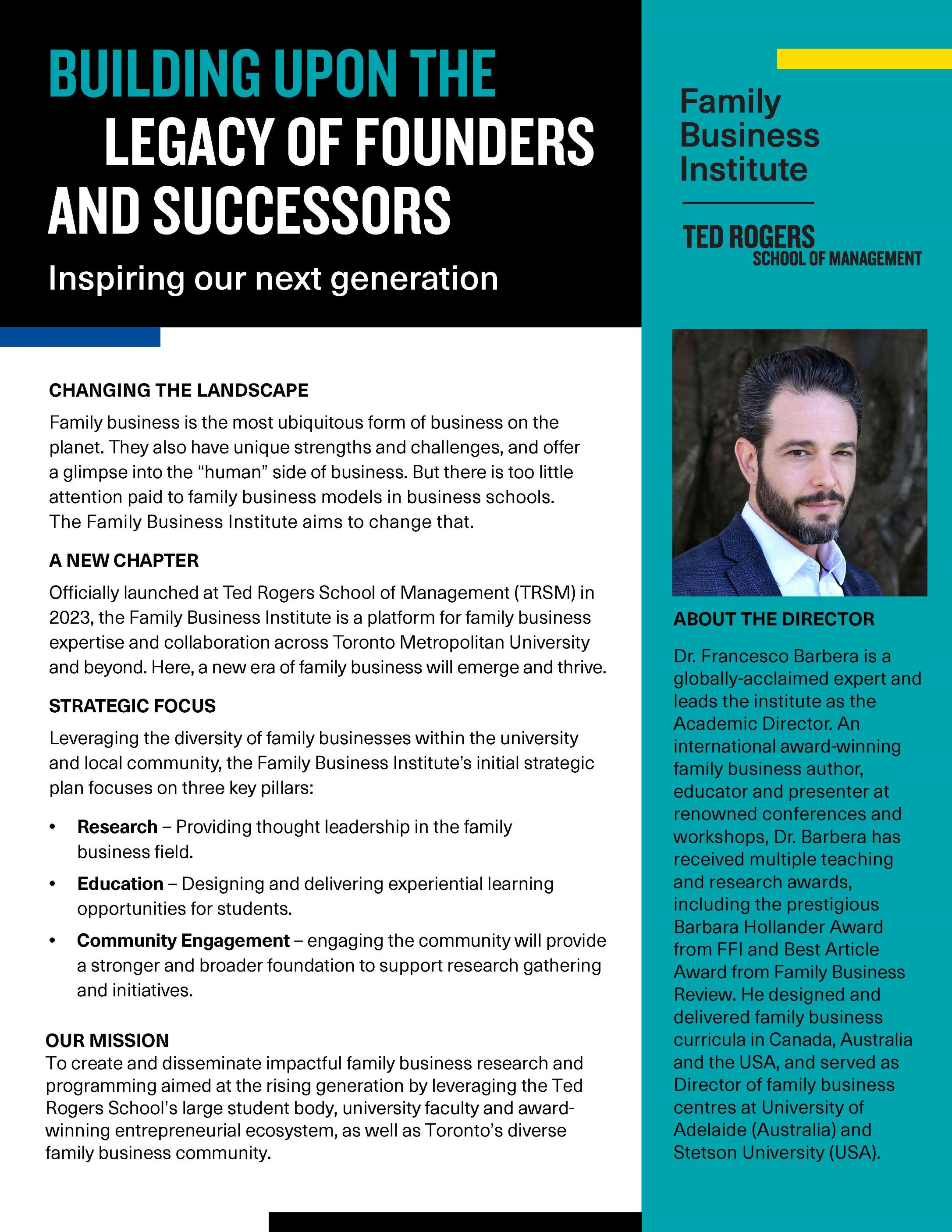 For general inquiries, please contact the Family Business Institute at familybusiness@torontomu.ca (opens in new window)