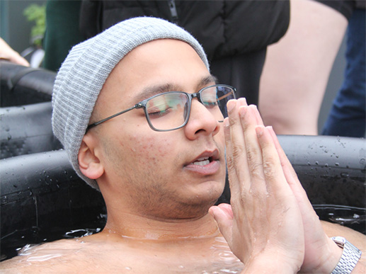 “The experience was exhilarating for me,” he said. “As I went into the water, I was immediately humbled - it was cold, so many times more than the cold showers... as the cold settled into my body and reached a point of no return, I gave in and lay my head back on the tube. It was peaceful and poetic to find some comfort in immense discomfort.”