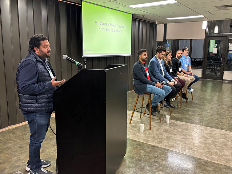 The keynote, which focused on entrepreneurship and perseverance, was delivered by Shoaib Ahmed, founder and CEO of Canadian electric scooter rental company SCOOTY.
