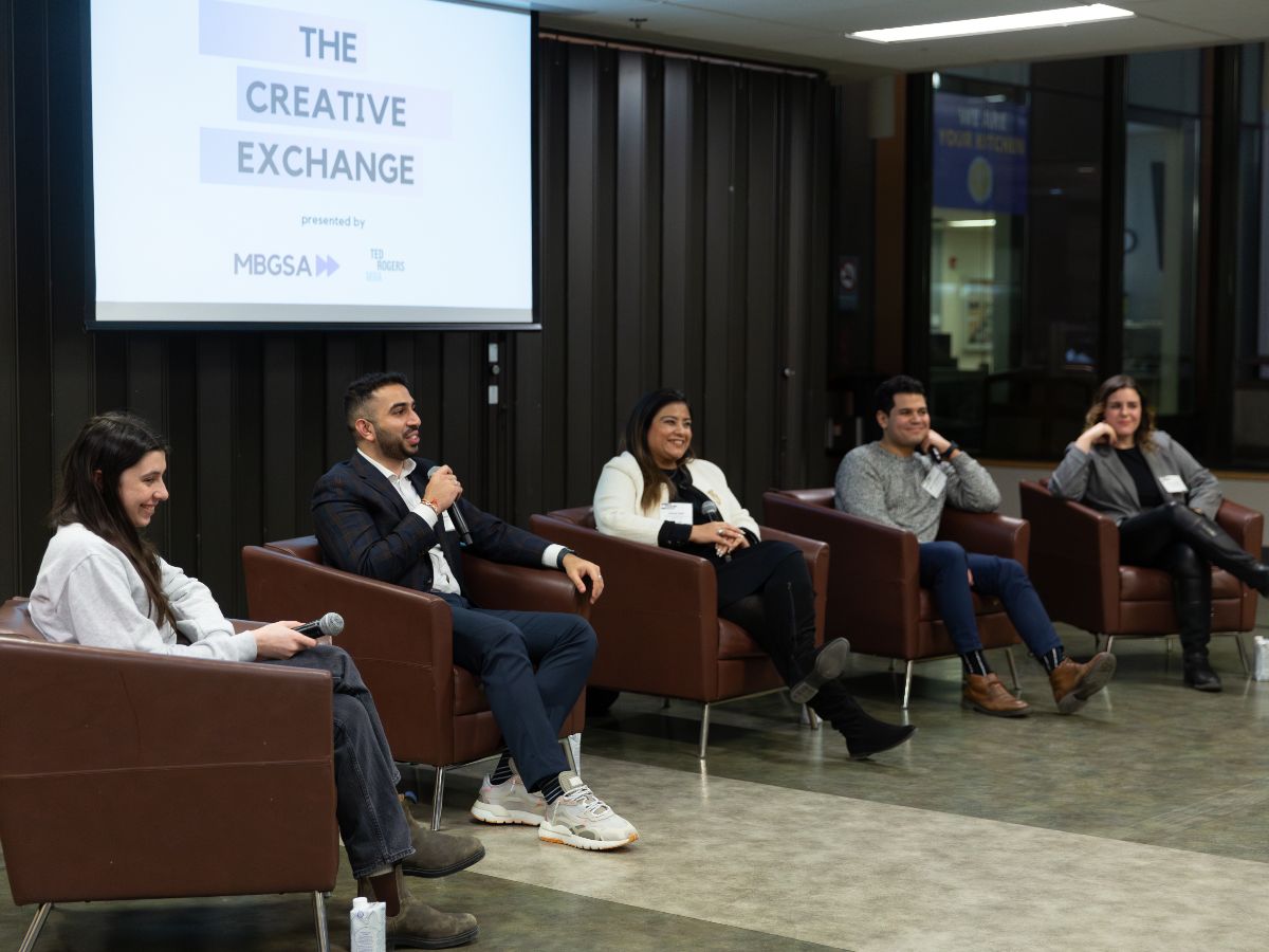 Ted Rogers MBA and Media Production (MA) MBA Pathway program graduate students had the opportunity to hear from media and marketing professionals about the AI revolution, influencer insights, digital marketing dynamics and balancing innovation, and risk in marketing and media endeavours at the inaugural "Creative Exchange: Conversations with Media & Marketing Professionals" event.
