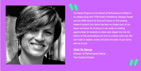“Our shared desire to provide research, creation, and performance opportunities is at the centre of this project with plans for a documentary film and live performances to premiere as part of FFDN 2021. The dancers will also be performing live at the Orillia Jazz Festival in mid October.” says St.Denys.