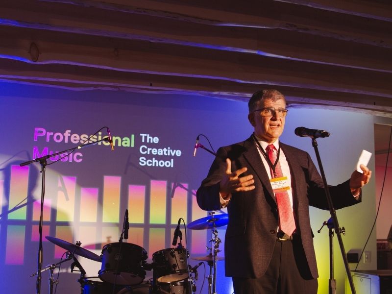 The Creative School Dean Charles Falzon makes remarks during industry event. Image Courtesy of Andy Nguyen