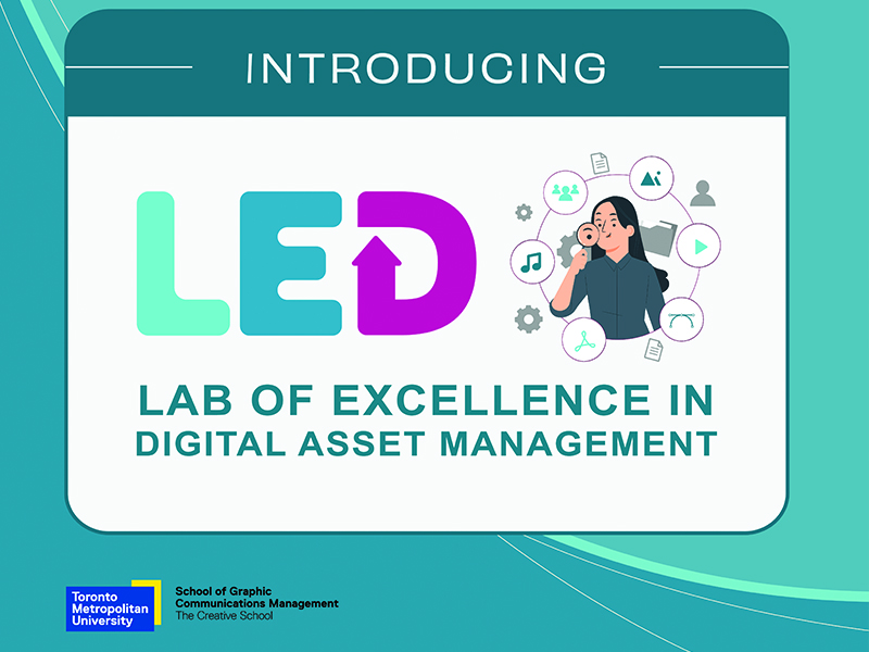 Spearheaded by Graphic Communications Management (GCM) Professor Dr. Reem El Asaleh, the Lab of Excellence in Digital Asset Management, or LED Lab (external link) has officially launched at The Creative School, Toronto Metropolitan University. The first and only academic research institution in the world exclusively focused on fostering in-depth research and education within the realm of Digital Asset Management (DAM), LED will provide practical and hands-on workshops on building, managing and adapting DAM across all industries.