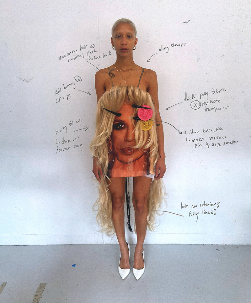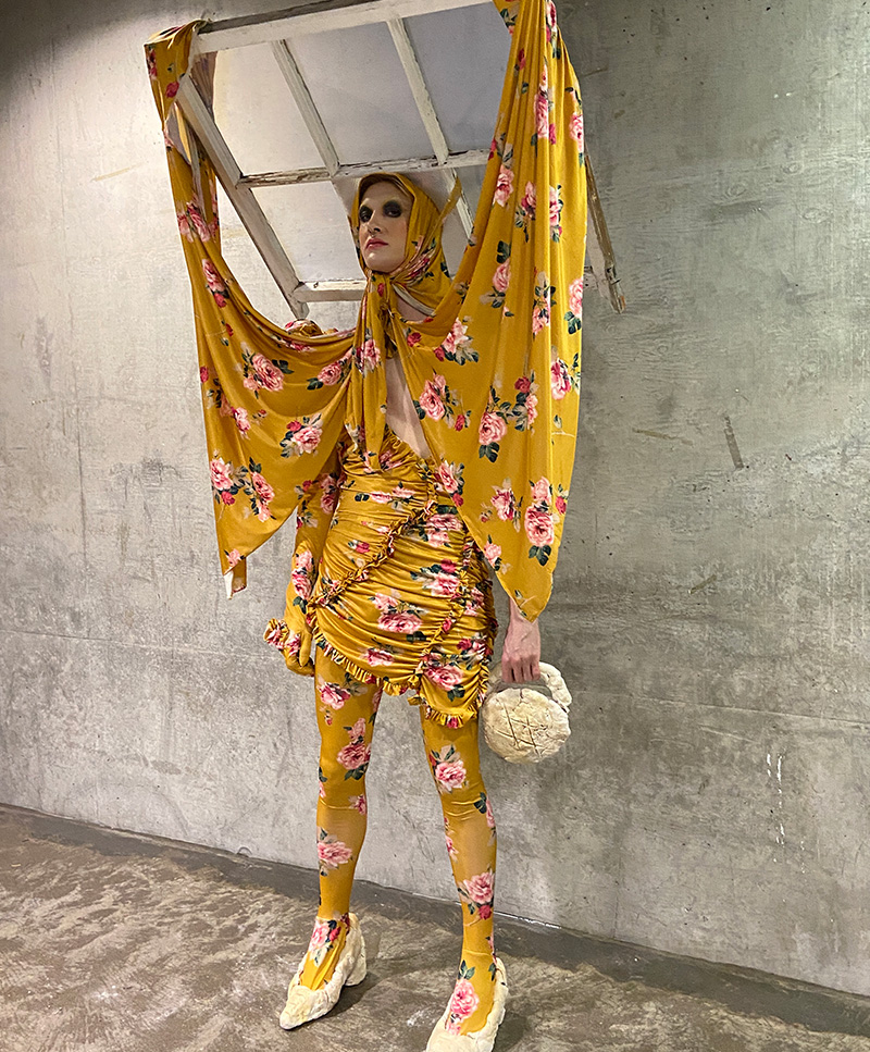 Their creative practice examines everyday identity and domesticity through narrative and form, bringing curiosity, wit, and precision to material exploration and garment construction. They have created custom pieces for artists including Chappell Roan and Julia Fox, extending their exploration of performance and self-expression through clothing.