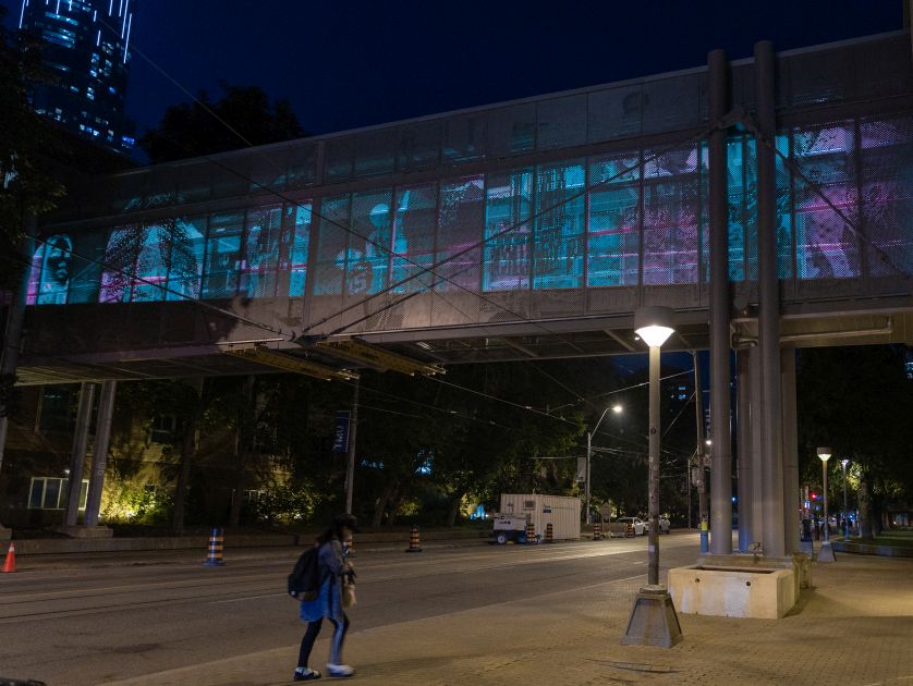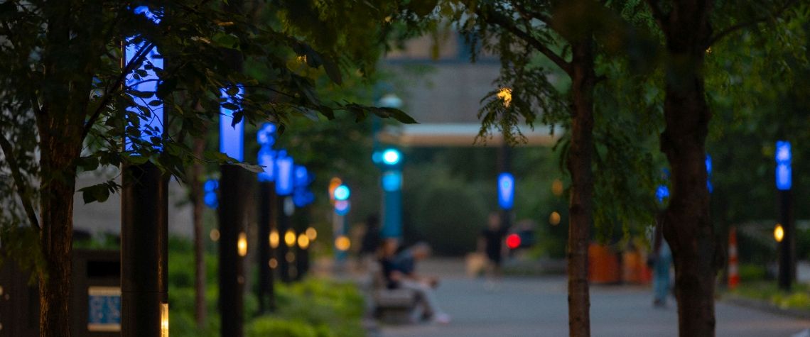 The TMU Lights program allows members of the Toronto Metropolitan University community to request colour changes to the programmable LED street light poles on Gould and Victoria streets and the LED lights on the Church Street bridge to highlight important themes, events, and causes.