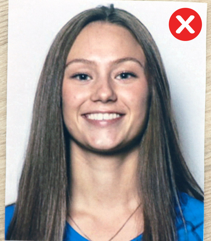 If you do not meet the photo requirements listed above, your application will not be processed. The decision to reject your photo submission is final and not open for discussion or debate.