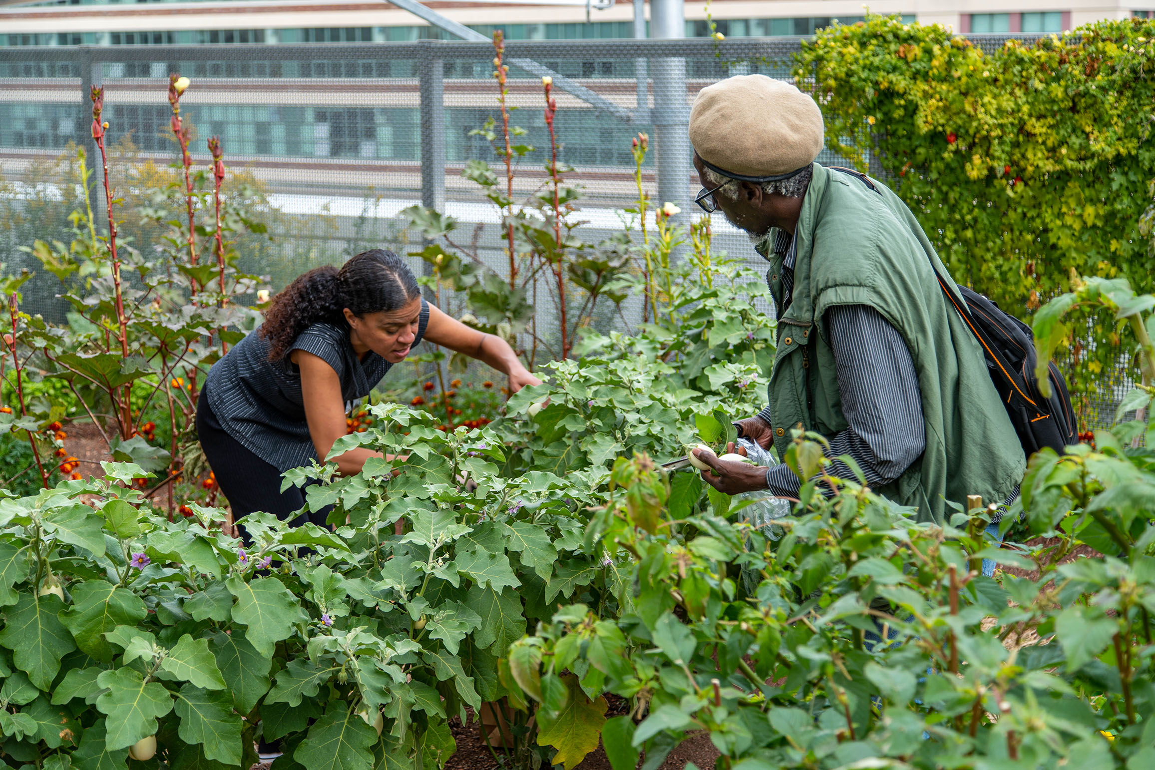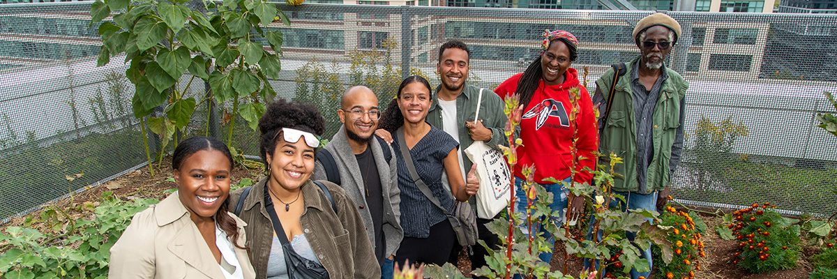 The Harvest Collective and the Learning Circle programs are Black Food Sovereignty initiatives at the Urban Farm. Launched in 2021, these programs aim to engage Black students, faculty, staff and the broader community through the sharing of food, from farm to table. On the Urban Farm rooftops, we grow a variety of crops and medicines that are culturally significant across the African diaspora.