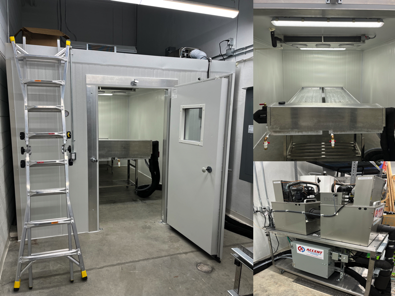In October 2023, specialized cooling plates and computerized controls were manufactured in BC and transported to TMU, where a 15-foot by 9-foot refrigerated chamber was built to regulate temperature and humidity. Now fully operational, the mini ice rinks are actively monitored with real-time sensors to track key variables for high-performance ice-making.